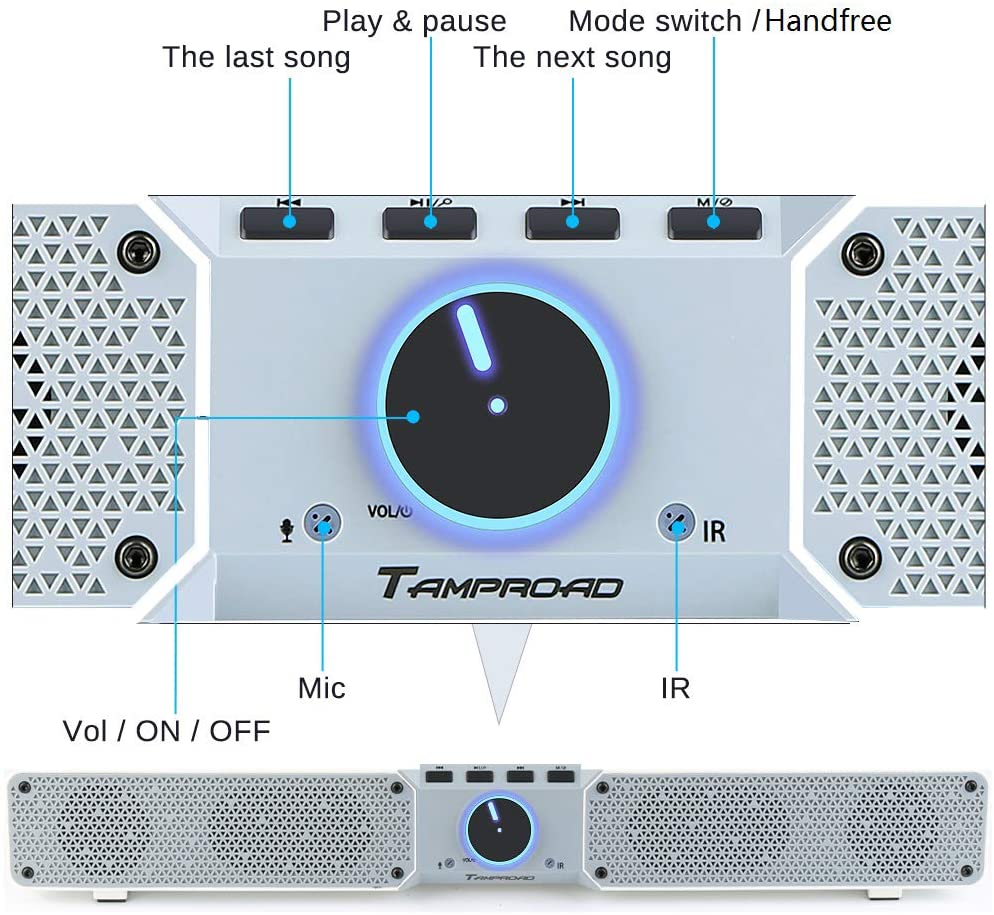 Bluetooth Version: 5.0 Driver Output : 2 x 10w, 2 x Diaphragm, THD 1%
