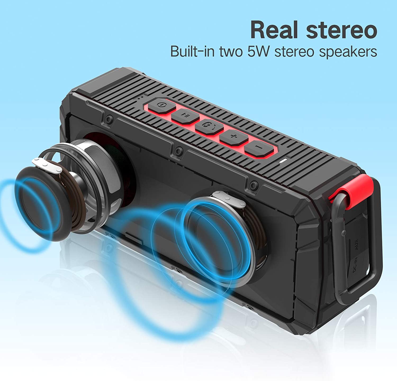 Bluetooth Speaker, 20W Speakers Bluetooth Wireless with Double Bass, Loud Surround Sound Small Party Speaker, Built in Mic, AUX, TF Card, USB, Portable for Home Yoga Camping (Black)